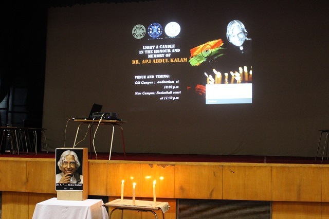 Dr Avul Pakir Jainulabdeen “A. P. J.” Abdul Kalam was a man of great vision, thoughts and dignity. The Missile Man who was popularly known as the ‘People’s President’ died on Monday evening after he suffered a cardiac arrest while delivering a lecture at IIM Shillong. In honour & memory of the legendary visionary, the Social Responsibility Cell (SRC) of XIMB, XUB organized a candle light march in both the campuses. The march was attended by Fr V Arockia Das, S.J. Dean Student Affairs. Initially, a silence of one minute was observed, after which students began the proceedings with an inspirational speech followed up by a video, paying tribute to the great man. The students then organized the candle light march to pay homage to the person who has transformed the nation.