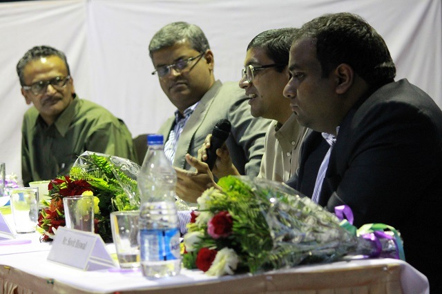 Dr. Sanjay Mohapatra initiated the discussion by speaking about web 4.0 and the role of students in the 4th web. The first speaker, Mr. Debashish Mahapatro spoke about technology making lives easier and illustrated this by stating an example of 3-D printing. He also spoke about the paradigm shift in technology and metamorphosis of conventional methods into new models. He mentioned about big data and the challenges faced in using and managing data. Mr. A Karthik spoke about the evolution of the three key drivers for digitization namely – Connection, Flexibility and Agility. According to him, Connections is about communicating which has seen a significant shift from a unidirectional medium to a bidirectional and accurately measurable one. He spoke of refinement of customer requirements due to this shift. Flexibility is ease of configuration in analytics. Agility is simulation and scenario planning in building a new architecture to link products, customers, services and dealership. Mr. Sovit Biswal started off with a video on how the world would evolve in the next 15 years and what impact technology would have on our lives. He spoke about digital strategy and industry 4.0 which included big data, cloud and augmented reality. He stated that there will be a lower energy price globe in the future owing to the advancement of technology in the field of energy.